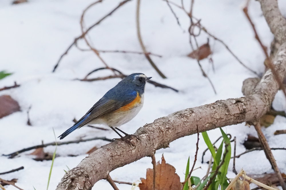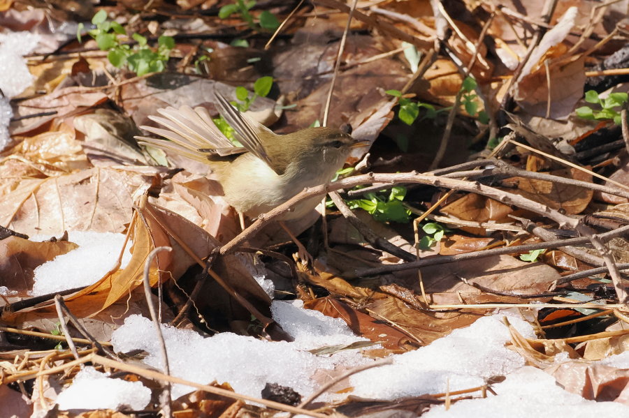 ルリビタキを撮っている途中、ウグイスも雪絡みで撮れた。