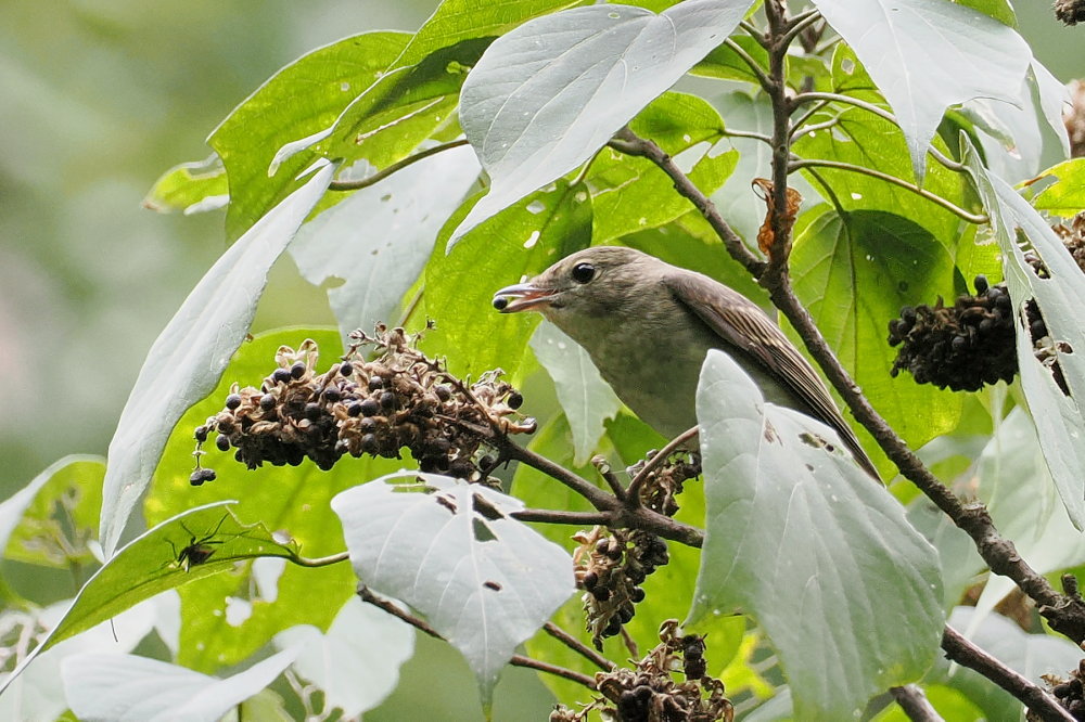 アカメガシワに着いてすぐ、キビタキ♀が出て来た。